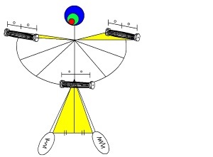 1.ゴルフスイングスタンス(肩幅程度両足広げ)で両手で器具を持ちゆっくり左右に振ります。